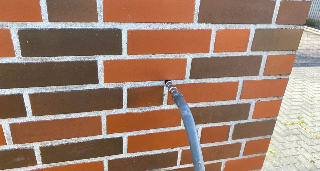 Der Schaum fließt beim Einbringen durch kleine Bohrlöcher in alle Engstellen der Hohlschicht. Dann bindet er ab, wodurch der Austritt aus kleinen Löchern und Spalten verhindert wird, die im Vorfeld nicht extra verschlossen werden müssen.
